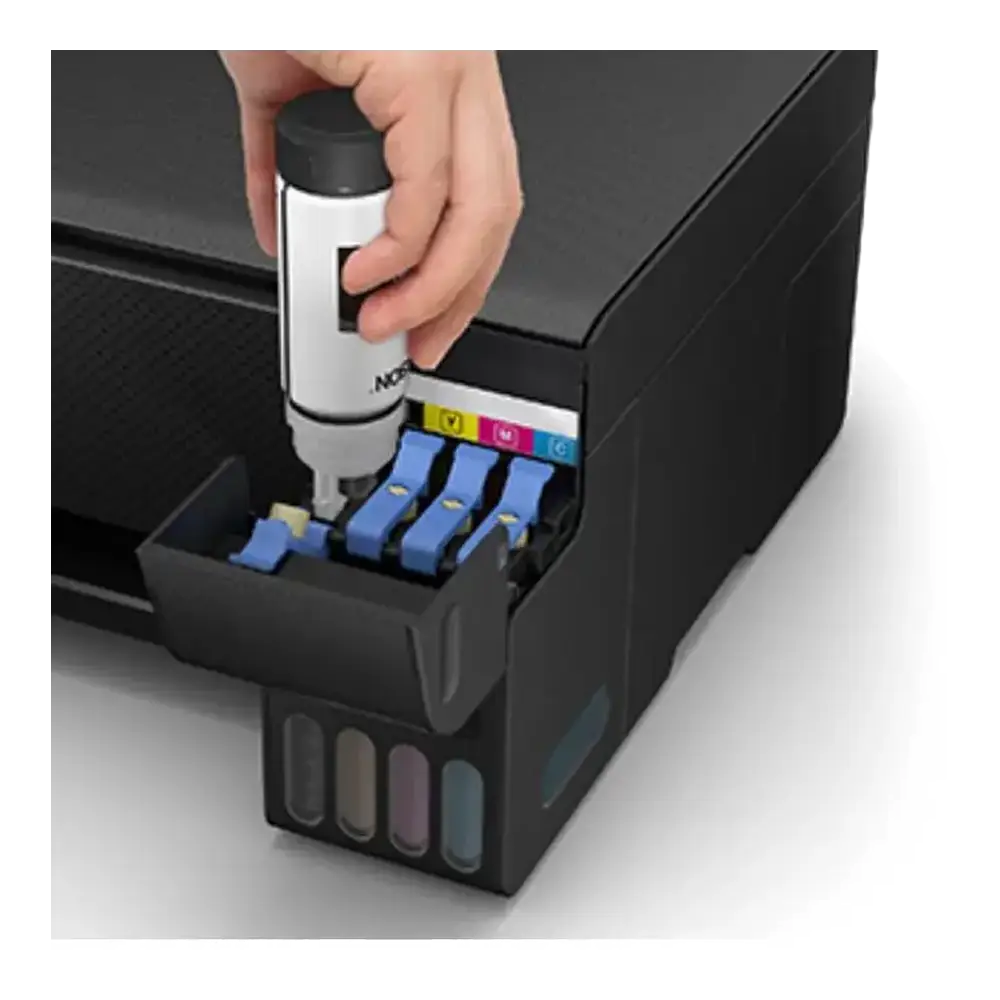 La principal ventaja de la Epson EcoTank L3251 es su innovador sistema de tanques de tinta de alta capacidad. Esto elimina la necesidad de cartuchos desechables, reduciendo drásticamente los costos de impresión y el impacto ambiental. Con su tecnología de impresión Heat-Free™ Micro Piezo de 4 colores (CMYK), obtendrás impresiones de alta calidad con un consumo de energía significativamente menor que las impresoras láser.