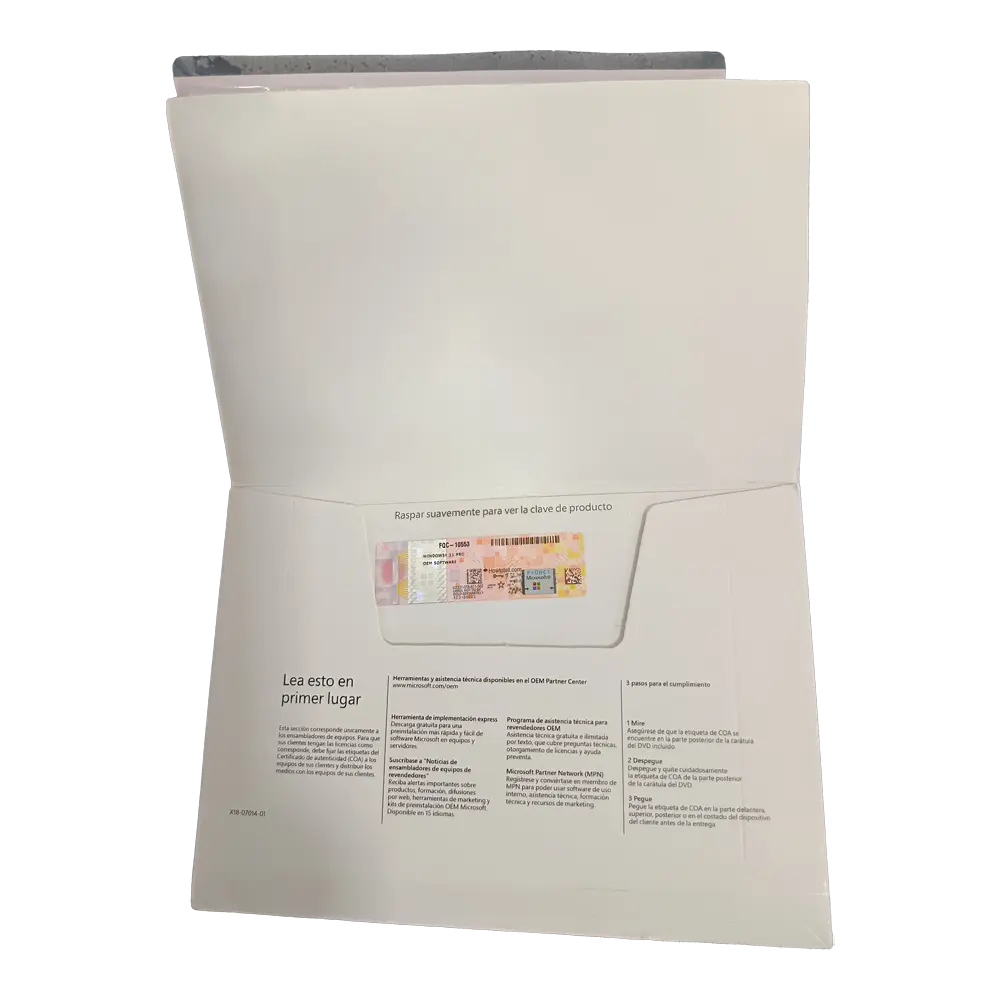 - Tipo de Licencia: OEM (Original Equipment Manufacturer) – Para equipo nuevo, no transferible