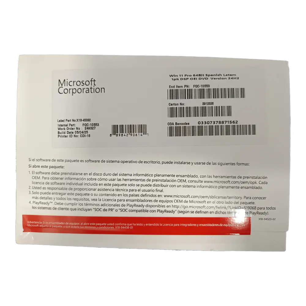 - Producto: Windows Pro 11 X64 Bits Spanish