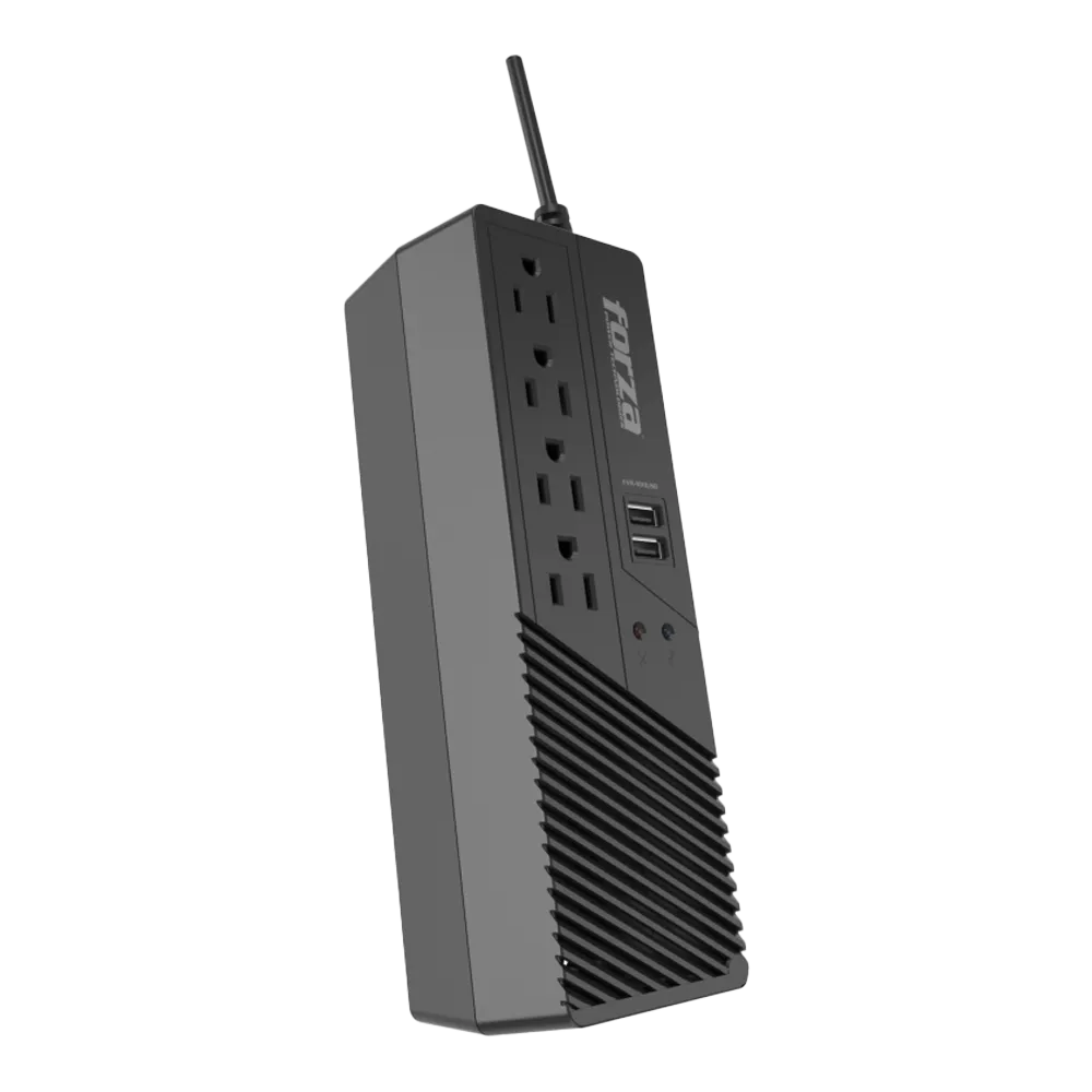 El regulador Forza FVR-1011USB presenta un diseño versátil que permite su montaje en la pared o debajo del escritorio con solo dos tornillos, ayudándote a crear un espacio de trabajo más organizado y seguro. Está construido con material retardador de llama (ABS), garantizando una mayor seguridad en caso de fallas internas. La tecnología MOV (varistor de óxido de metal) y un termofusible de protección ofrecen capas adicionales de seguridad contra sobrecargas y subidas repentinas de tensión.